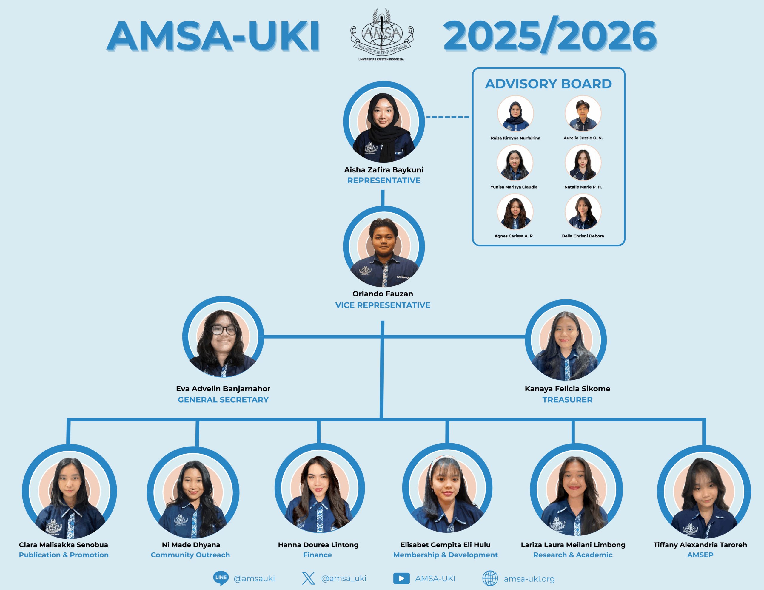 Asian Medical Students’ Association Christian University of Indonesia was formally found in 29 August 2008, but it was an observer since 2007. AMSA-UKI was brought upon by seven founders, they are namely dr. Putri Puspitasari, dr. Raedy R. Susanto, dr. Jillientasia Lilihata, dr. Windri Retnaningdyah, dr. Dwi Handayani, dr. Rizky Ahmad Ayubhi and dr. Ido N. Bramantya (who was the first Representative of AMSA-UKI itself).